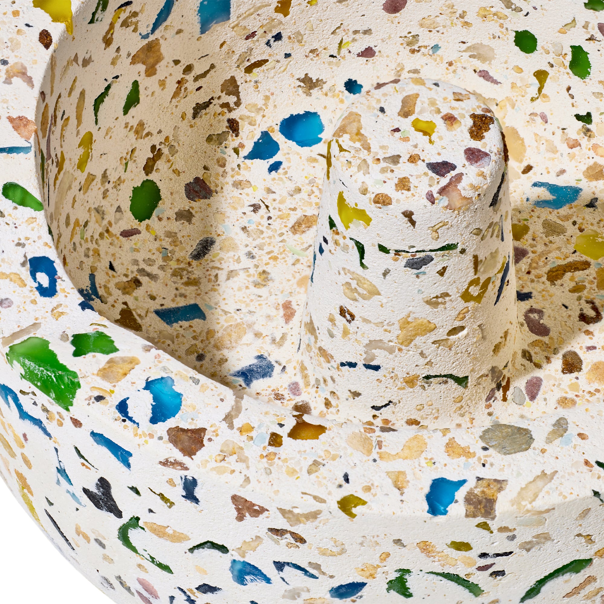 手注ぎテラゾーコンクリートベース:リサイクルガラスを混ぜ込んだテラゾ素材は、ひとつひとつ表情が異なる唯一無二の質感を演出します。